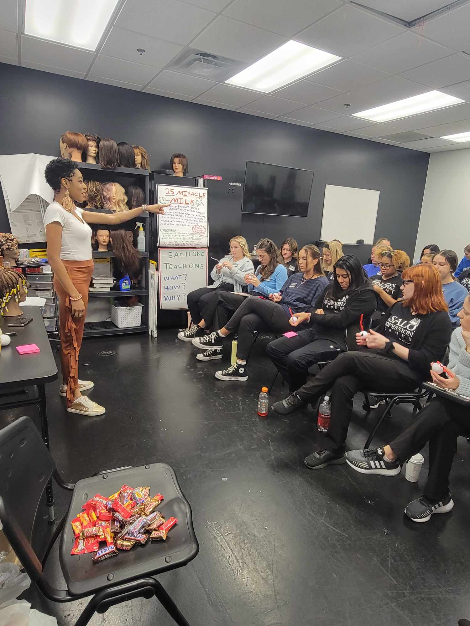 On a crisp October morning, the students at The Salon Professional Academy Fort Wayne were in for a transformative experience. Tesia Tillman, a Mizani representative and self-proclaimed “Texpert,” brought her wealth of knowledge from the Detroit, Michigan area to enlighten eager minds on the nuances of textured hair care. As the proud owner of Xpressions of You Hair Studio, Tesia’s expertise and passion shone through as she shared her invaluable insights. Her visit not only marked a significant milestone in the students’ education but also shed light on the critical need for proper textured hair care.